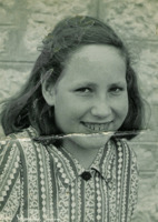 Photo PHO-A-2-108 Portrait de Michèle Métrailler, élève de l’école de Dardagny, classe de M. Charles PIERREHUMBERT.
