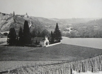 Photo PHO-B-0-116 Vallon de l’Allondon avec en premier plan la chapelle de Malval et sur la gauche le hameau des Baillets.