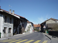 Photo PHO-B-0-115 Centre du village, route du Mandement, avec dans le fond le bâtiment communal