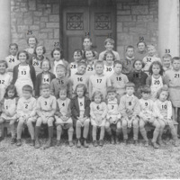 Ecole de Russin. Copie d’une photo des classes de Mme Suzanne Hutin-Lombard et M. Louis Dufour.