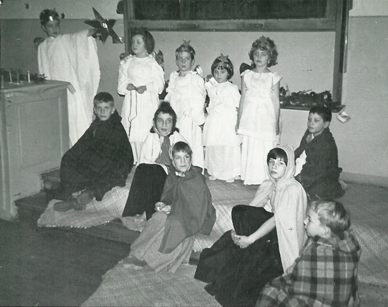 - Copie d’une photo d’une classe de Russin. Scène d’une fête de Noël. Ducoment non daté et partiellement identifié.