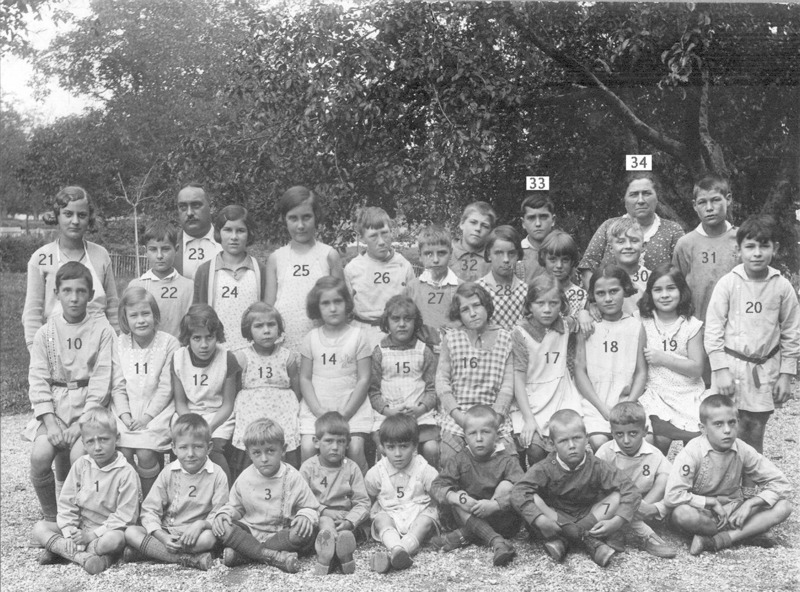 Ecole de Russin. Copie d’une photo des classes de Mme S. Hutin-Lombard et M. Louis Dufour.