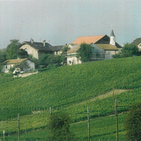 - Vue panoramique partielle du village de Russin. L’ancienne cure en restauration.