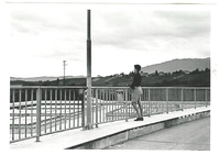 Photo PHO-B-0-183 Vue générale depuis le barrage de Verbois, avec dans le fond, le village de Russin. Le jeune homme : .- . . . . -