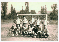Photo PHO-C-D-1 Joueurs du Donzelle sur le terrain de la Plaine. Debout : André vocat, André CHABLAIX, Henri BARRAUD, Gilbert MONNIER, Titi TERCIER Accroupi : Kiki CARREL, André VERMUTH, Jules PENET, Albert KURER, Alex ZOHLER, Jacques DESBAILLET, Willi RÖTHLISBERGER -
