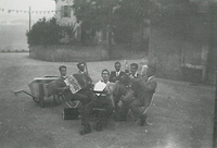 Photo PHO-C-J-9 Voyage aux Grisons De gauche à droite : Ernest Romanens, André Chabot, Samuel Gillieron, Albert Kurer, Georges Penet. -