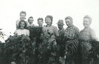 Photo PHO-D-0-32 Vendanges chez RUDAZ. Identification : La dame dans le fond, de profil est Madame Rose RUDAZ, Les autres personnes ne sont pas identifiées.