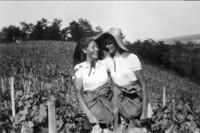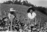 Photo PHO-D-0-42 Travail de la vigne, les effeuilles A gauche, Mme Elise PORCHET et à droite, une effeuilleuse suisse-allemande. -