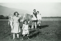 Photo PHO-D-0-37 De gauche à droite : Simone RUDAZ, Marie-Claire, Frédéric et Jean-Pierre LAMBERCY. La génisse : . . . . . . . . . . . . . -