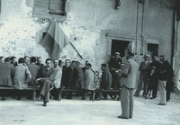 Photo PHO-E-A-3 M. Robert DESBAILLET, nouveau maire, parle devant les hommes de son clan. -
