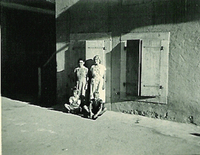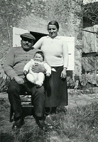 Photo PHO-H-0-10 Monsieur Jules DUFOURNET et son épouse Rosina avec leur fille Juliette, derrière leur maison aux Baillets. -