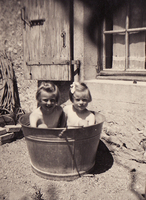 Photo PHO-H-0-104 Le bain hebdomadaire. De gauche à droite, Noëlle et Michèle METRAILLER. -