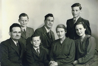 Photo PHO-H-0-107 La Famille PITTET De gauche à droite : Monsieur Robert PITTET, Roger PITTET, Marcel PITTET, André PITTET, Madame Lydie PITTET, Fernand PITTET, Rachel PITTET.