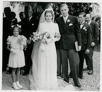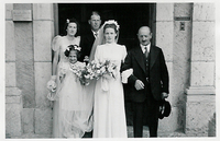 Photo PHO-H-0-130 Noce Joseph DUGERDIL - RAMU. Monsieur RAMU et sa fille à la sortie de la mairie de Dardagny, LE 30 août 1941. -