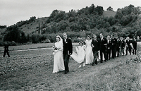 Photo PHO-H-0-132 Cortège de éa noce Joseph DUGERDIL-RAMU à la sortie de la Chapelle de Malval. -