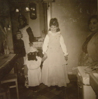 Photo PHO-H-0-143 Déguisés de l’Escalade De gauche à droite, dans le fond : Claudine ROMANENS (FORESTIER) Marie-Claire LAMBERCY (LÄNG) Devant : Dominique PRAZ, Isabelle METRAILLER (BONDI) Denise BERSETH. -