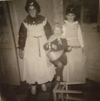 Photo PHO-H-0-142 Déguisés de l’Escalade De gauche à droite : Marie-Claire LAMBERCY (LÄNG) Claudine ROMANENS (FORESTIER) Isabelle METRAILLER (BONDI) -
